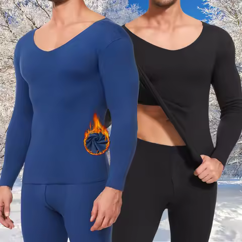 男性用の超薄型サーマルアンダーウェア,長袖,高い弾力性,大きいサイズ,一定温度,1個